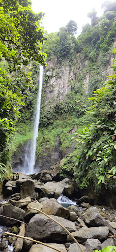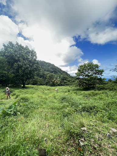 DETAILED DIRECTIONS: park before the big concrete water tank, walk up the road past the water tank u will see a faint trail it curves to the right pretty soon after that u will walk past a green gate covered in vines and there will be a fork in the trail, go to the right there is a small garden, straight thru the garden the trail picks up again to the left of the big coconut tree. The trail is barely visible, and it goes into the bush. It becomes a little more visible once u enter the bush, but you have to walk thru a "bush" first. This is the most difficult stretch. It is very steep downhill until it hits the river. Once the trail runs into the river, straight across the river, the trail picks up again. At this point, we marked the trail by stacking rocks so we could find it on our way back, which turned out to be helpful. You will walk on the right side of the river in the forest. This trail will get closer to the river at the end, follow it until you are walking on the river rocks, and then when u reach the water, straight across, the trail picks up again. Stack some rocks to mark it. You will walk in the forest to the left of the river. This part is also difficult. This trail will end with a steep decline into the river where there is a small pool and a big fallen tree hanging over the river with vines dangling from it. This is maybe 3/4 of the way, and the river now becomes the trail. Just follow it upstream and enjoy. I recommend a guide to support the locals, and they can spot early signs of flooding. You can't escape this...