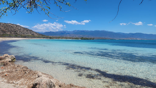 Cons El acceso; hay que dejar el vehículo a unos 15-20 minutos de la playa, luego caminar por terrenos escarpados(subir una montaña y bajarla), literal. Las facilidades; no hay baños ni comercios, lleve todo lo que necesite, todo! La Seguridad, es mínima no lleve nada de valor. La limpieza, hay basura y algas.