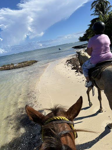 We were very excited for this excursion but were met with a huge disappointment. Starting with the drive to the horses, the driver was on his phone the entire time and was swerving in and out of traffic as well as slamming on the breaks and accelerating very hard. It was a scary drive for every couple in the van, we even all joked we needed to say a prayer. when we booked this excursion, we were told we could bring water, sunscreen, and anything else we might need, however, when we got there, we were told we were not allowed to bring anything, including our waters. For a 2 hour horseback trip in the Caribbean sun, you need water. While horseback riding on the beach, it was lined with party boats blasting music the entire time(see picture). The trail was also covered in trash everywhere you looked. The guides were not friendly either. They even threw a styrofoam to go container (just one of the thousands of pieces of trash) at one of the horses that was making noise. The drive back to the resort was no better, I got so carsick that i threw up as soon as we got back. I would save your money and book a different excursion, not...