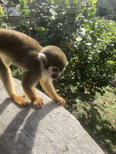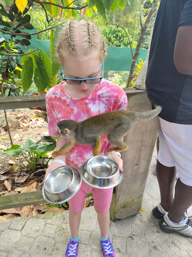 After entering the beautiful monkey enclosure, the squirrel monkeys know it is feeding time. I was occupied taking photos of my children who had a wonderful time, but one hand was in my pocket while taking photos. One monkey climbed onto me and was checking my pockets. In the post analysis, he was able to very gently check my empty pocket easily but couldn’t check the pocket that had my hand in it. I didn’t know that this was something they did as we were not told the monkeys would do this.