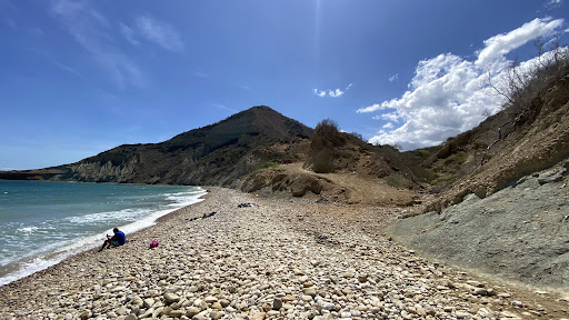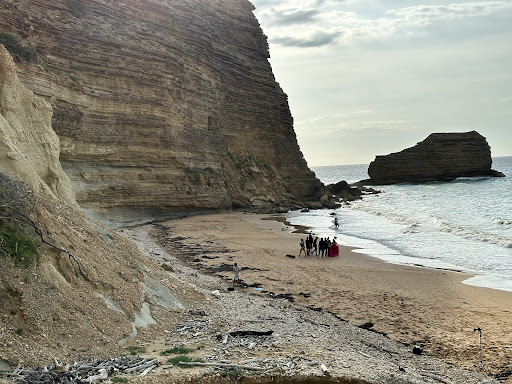 We went here just before dusk on a Friday in February 2020. It was spectacularly beautiful. After parking you walk for about 3 minutes down a rocky slope (not difficult even for the unathletic) and you are at a beach hemmed by cliffs of gorgeously stratified rock. You cross a brief zone of beautiful rounded stones to a narrow strip of superfine sand the color of cafe con leche. Close in, the water is a milky ice blue (not clear, because of the sand i think). A couple of hundred feet out the water is a darker blue and clear enough to see your toes. There were only 6 other people on the beach.