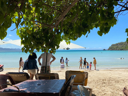 English: It is a beach with: good view, Excellent 👌 atmosphere, perfect for children, very good food, a wonderful view, they have packages for sightseeing in the area, they also have games for adults and children at a good price.
