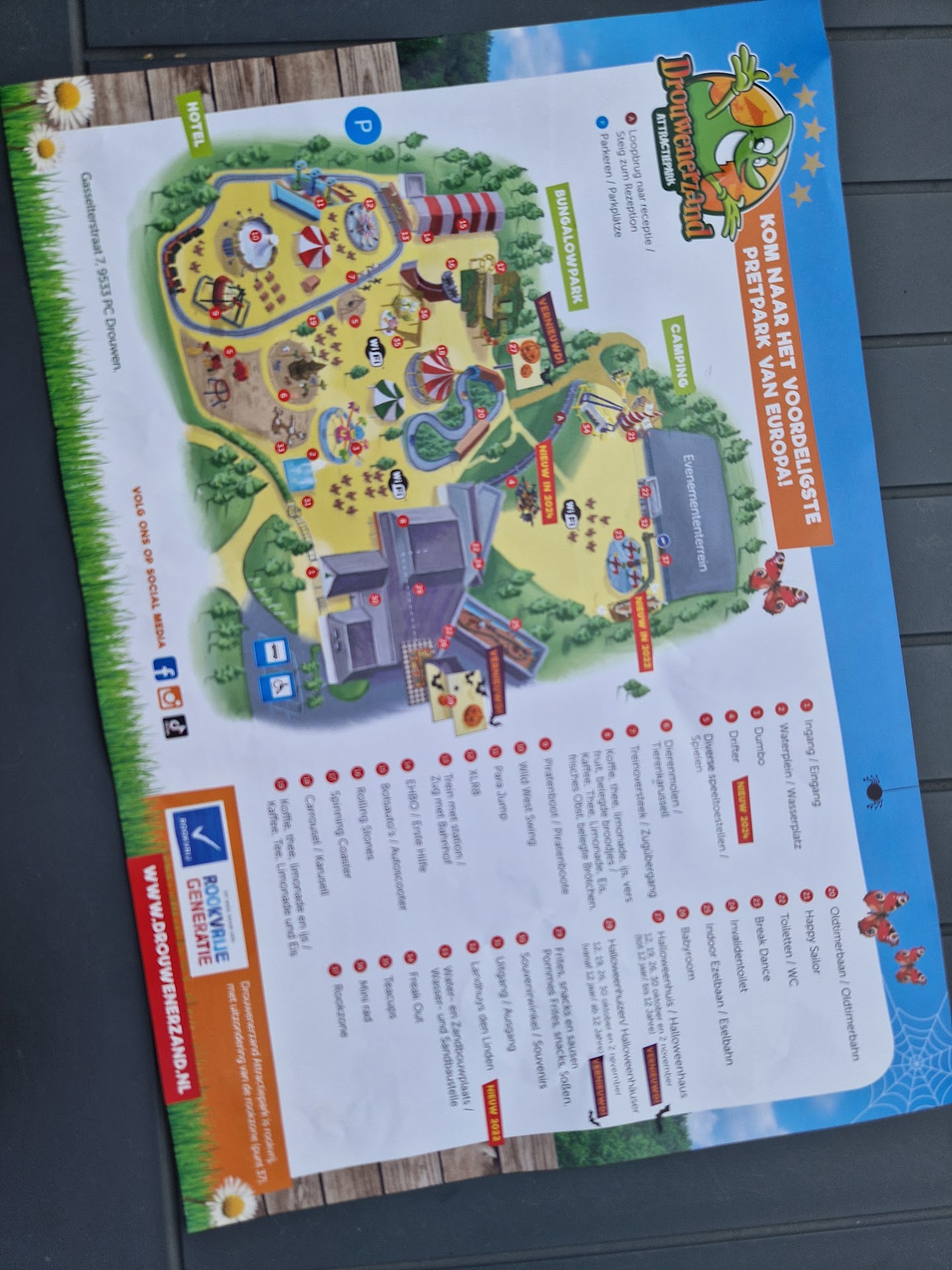 Read moreEen veredelde kermis is het. Ik las online dat ze bezig zijn met de aankleding van de attracties. Het zal wel jaren duren voor het niet meer als een kermis eruit ziet. Voor jonge kinderen is dit park ideaal. We hebben hiervoor gekozen en niet voor Slagharen. Tip: ga er pas heen als je kind minimaal 90 cm is. Dan heeft je kind meer plezier dan met 80 cm en kan die in meer attracties. Er was alleen frisdrank te verkrijgen via drinkautomaten. Je kunt koffie/thee en limonade krijgen. Eten en drinken zit bij de toegangsprijs inbegrepen, maar geen idee hoe dat werkte. Dat werd ons niet uitgelegd bij de entree. Overal is terras waar je kunt zitten. Naar mijn mening vind ik dat er teveel terras was. Soms moest je ertussen wringen om naar een attractie te kunnen gaan. Park is klein en overzichtelijk. Voor mijn oudste van 1.05 meter waren er 2 attracties waar ze niet in mocht, dus dat zegt wat over alle plezier die ze heeft gehad. Ze mocht zelfs in de breakdance, een kermisattractie. Het spookhuis vind ik niet eng. Sommige plekken waren te verlicht en andere te donker. Ook kon je de attractie zien door de camerabeelden die bij de karretjes stonden. Mijn oudste vond het wel eng, maar ze is nog jong. Bij de attracties staat redelijk duidelijk wat de lengte eisen zijn. Ik vind dat het nog explicieter mag worden aangegeven wat de lengte eisen zijn voor begeleid en voor vrije toegang. Er staan wel 2 icoontje op met 2 lengte eisen, maar niet bij voor begeleid of vrije toegang. Ook moeten ze de palen met de kleuren paars (geen toegang), oranje (begeleid) en groen (vrije toegang) op plekken zetten, waar iedereen ze kan zien. Sommige staan vlakbij de ingang, maar als de rij te lang is kun je de palen niet zien. Familieachtbaan stelt geen reet voor. Daarom ook geschikt voor kindjes van 80 cm. De autoattractie is erg teleurstellend. Je kunt het vergelijken met 'de oude tufferbaan' van de Efteling, maar dan 1 klein mini rondje. Wat verassende is, dat ze ook een rondrit hebben langs de hunebedden. Duurt een uur en kost €4 p.p. Er is 1 plek om een baby te verschonen, maar die heeft maar 2 verschoonkussens. Dat is wel teleurstellend. De ezelbaan was leuk, maar ik stoorde me aan alle tafels en stoelen die ervoor stonden. Kortom: een geschikte attractiepark voor kleine en jonge kinderen, maar verwacht niet veel ervan. Het is één groot kermisterrein. Er is ook een vakantiepark erbij. Ik zou dat niet doen als je dan 2 dagen naar de attracties kunt gaan. Ik zou get vooral doen als je ook de omgeving...