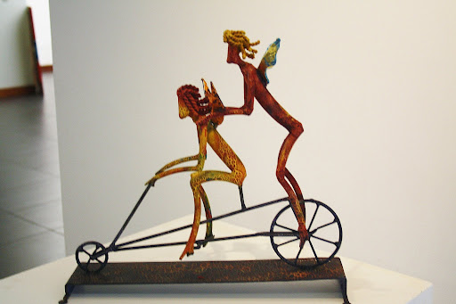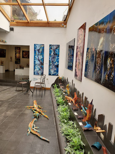 This was the best art gallery we visited in Cuenca, no doubt. Most of the work—a truly incredible amount of work—is that of Miguel Illescas. He works a lot with metals and chemicals to produce a wide variety of pieces which I cannot even begin to describe. He crafts sirens, elaborate boats full of coral musicians, hummingbirds, lizards, and tons of remarkable abstract pieces, too. My dear companion and I briefly got to meet the artist and almost had coffee with him in the gallery. We were just sitting down to coffee when another couple came in looking to buy something, so of course they took precedence. But Señor Illescas is the kind of kind guy who welcomes anybody into his gallery—he didn't seem snobby in the slightest! Ojalá he doesn't mind that we took a few pictures... Photos of art never do it any justice, we know that; we just wanted to share these unique beauties with some people who can't get all the way to Cuenca. But if you can, go and visit this gallery yourself! The gallery features a few other artists in a smaller section of the gallery, where there are some great wood sculptures and paintings. Overall it is an enormous gallery—clean, classy, comfortable, and chock full of spectacular artwork. Take your time in...