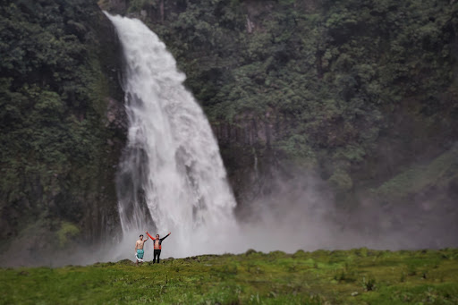 Read moreCascada natural de 80 metros de caída y 10 metros de ancho. El acceso desde la ruta no está bien indicado. Como referencia, hay una garita que dice "Welcome to the jungle", a 100 metros aprox de Junglares. Llegando desde Quijos el ingreso está a la izquierda. Se debe ingresar con el vehículo hasta un parqueadero (camino en buen estado, apto para todo tipo de autos) y luego caminar hasta la cascada. El sendero a la cascada es corto y no reviste dificultad pero se debe cruzar el río, por lo que es necesario ir con botas de caucho. Recomiendo llevar campera impermeable para poder acercarte a la cascada, hay una intensa bruma a...