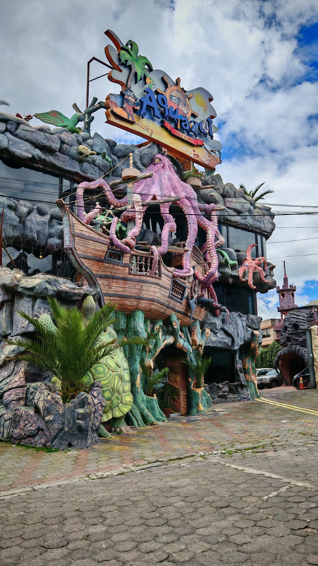 Read more✅La decoración del lugar es magnífica, incluso los uniformes del personal siguen la temática de piratas. Cuenta con 1 piscina grande, 2 medianas, 1 pequeñas, 1 hidromasaje, 1 polar, 1 sauna y 1 turco. ✅El precio de la entrada para adultos de $8,00, niños $6,00. ✅El lugar cuenta con restaurante, la comida es muy buena: salchipapas, papi pollo, pescado frito, jarras de jugo. ✅El lugar es limpio, seguro, cómodo. Te entregan un número al momento de registrarte (nombre y número de cédula), para que guardes tus pertenencias o para que pidas alimentos que después se agregarán a tu cuenta de consumo. ✅El agua de la piscina grande es tibia, el de la piscina para niños (tobogán de barco pirata) es un poco más caliente, el hidromasaje es muy caliente (se alternan los choros de agua, un momento da en la espalda, luego en los pies, y luego se activan los "chorros de serpiente". ⚠️ Lo único malo del lugar es que su turco y sauna son demasiado DEMASIADO calientes, la gente se desmaya, y en fines de semana hay bastante gente, lo que...