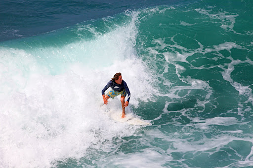 I've found that place accidentally when walking from La Chocolateria (a very long walked). What a nice surprise discovery it was. At first, I started photographing some unusual rocks, then the waves along the nearby beach, then the waves lashing the rocks, then, I saw it all. The surfers were hunting big waves and some were really skilled. Occasionally, some big waves would hit some unusually shaped rock. There were also sea lions on...