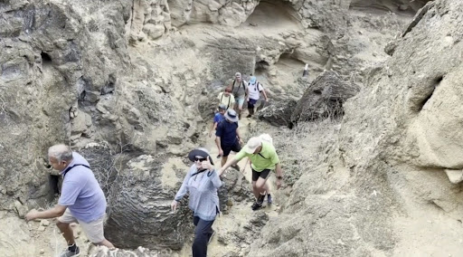 Read moreWe took a short panga ride from our HX ship for a morning visit to the beach of Punta Pitt. We watched sea lion moms and pups sunning themselves on the sand. A sea lion dad chased 2 pups out of the water to protect them. Part of our tour did the rocky hike up to see the red-footed boobies. The sea lions were unafraid and watched our group from where they lay. After our beach walk, we rode a panga along the island's shore. We spotted fur seals and Nazca boobys on the rocks, and Frigate birds...