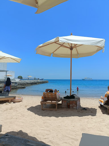 Beach itself was small and cosy but the music that waiters were playing from the phone at the bar was disaster. Level of noice was unacceptable. Even tho they were asked to do something about it, it seemed like they were doing it on purpose. They were increasing volume for some songs and then decreasing it, then playing same songs for couple of times in a row then again after some short time the same song was going. Then someone was calling it on the same phone(from which music was playing) so you could hear ringtone on the speakers. Then again one song for 30 seconds and the someone just change it again and then increase the volume then change for another one after some time not even letting song to finish. And again and again and again for hours like that. Like they were playing the music at their own home for their own entertainment. It was really annoying. Also toilet, at least for males, was in a poor condition. We payed 250LE per person and we felt like they wanna make us leave. Coffee was good tho. All in all. Worth to come and go once. But they could work it really good with good manager and a bit higher salary. Maybe to be the best in Hurgada. Hope this come to...
