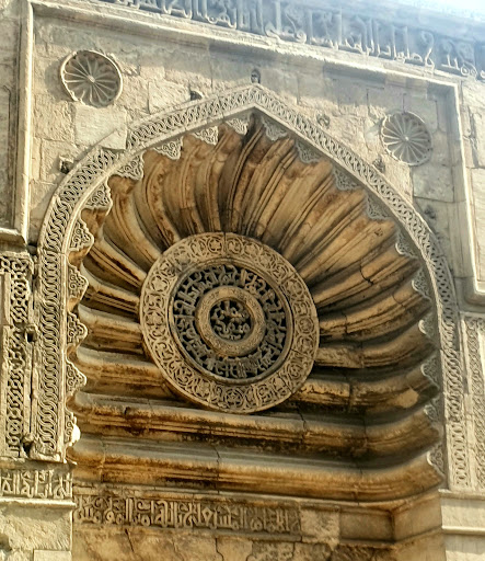 عباره عن عقده مكسو برخام ملون دقيق تعلوه لوحة تذكارية تسجل أعمال تجديد الجامع التي أجراها الأمير يليغا السالمي سنة 1396م بأمر السلطان برقوق. ويشير النص الكتابي أن اعمال التجديد شملت اقامة المئذنة وعمل المنبر.