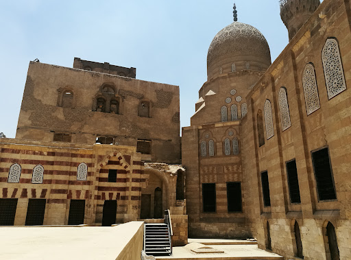 Kahire'nin en güzel mimari eserlerinden bir tanesi olup, ilk Osmanlı Beylerbeyi Hayır Bey tarafından kullanılmıştır. Hayır Bey'in kendisi de bitişikteki ismini taşıyan cami haziresinde bulunan türbesinde medfundur. Hayır Bey, Çerkez asıllı olup muhtemelen 1464 veya 1465 yılında Kerâc yakınlarındaki Samsum köyünde doğmuştur. Babasının adı Memluk emirlerinden Malbay’dır. Künyesi Hayır Bey bin Malbay olarak belirtilir. Yetişkin çağa ulaşınca babası tarafından kardeşleri Kesbay, Hızır Bey, Canbolat ve Kansu gibi Sultan Kayıtbay’ın hizmetine verilir. Köle statüsünü haiz olmadan girdiği Memluk sarayında yetiştirildikten sonra sultanın memluklerinden biri olur. Ardından Devatdar Akbirdi’ye intisap eder ve haseki devatdarı Sikkın ünvanını alır. Sonraki yıllarda Mukaddem Elf Emîrleri arasına girer ve 1502’de Kansu Gavri’nin Memlük Sultanı olması üzerine hâcibül hüccâblığa tayin edilir. 1504 Eylülünde, Şam’a tayin edilen Emîr Sıbay’ın yerine Halep nâipliğine getirilir. Bu görevi sırasında Osmanlı-Memlük sınır mücadelelerine yakından şahit olduğu gibi, Yavuz Sultan Selim ile Kansu Gavri arasındaki mektuplaşmalar da onun vasıtasıyla yapılır. Bu durum, daha sonra Şam’ın ve Mısır’ın Osmanlılar tarafından zaptında oynadığı etkili rolün başlangıcını teşkil etmiştir. 1517 yılındaki Ridaniye savaşından sonra Osmanlılar’a bağlılık göstererek, memlükler, şeyhülaraplar, mübâşir ve âyanları Osmanlılar’a itaate teşvik eder. Böylece Osmanlılar’a itaat edip sadakatle hizmette bulunan Hayır Bey’in, Mısır’ın durumunu ve Memlük kanunlarını çok iyi bilmesi, Çerkez ve Araplar’ı hoş tutmadaki kudreti onun Mısır Beylerbeyliğine getirilmesinde rol oynar. Hayır Bey, itaat ve sadakatlerinden emin olduğu Memluk idarecilerine görevler verir. Bu arada kendisi de halka adalet ve şefkatle muamele etmek, fesadı önlemek, Memluk mevzuatını ıslah ederek uygulamak, Mısır’ın sınır ve limanlarını dış tehlikelerden korumak ve Haremeyn erzakını düzenli biçimde sağlamakla görevlendirilir. Hayır Bey’in Mısır idaresinde karşı karşıya kaldığı ilk meseleler; devlet merkezi, Mısır’da bulunan Osmanlı Beyleri ile askerleri ve eyaletin mahallî kuvvetleri olan Memlükler ve Şeyhülaraplar arasındaki münasebetleri düzenlemek olur. Ayrıca Mısır’ın zaptından sonra gizlenen memlukler için çıkarılan umumi aftan istifade ederek ortaya çıkıp itaat gösterenlere, askerî kabiliyet ve maharetlerine göre ulûfe ve cerâye, yaşlılarına da tekaüt ulûfesi bağlar. Mısır’ın durumunu iyi bilen Memluk emîrlerinden kethüdâ, devâtdâr, mîrâhur, mihmandar vb. idarî ve askerî yardımcılar seçer. Mısır’ın zaptından sonra Yavuz Sultan Selim, Mısır’da Osmanlı nizamının kısa sürede kurulamayacağını anladığından, eyaletin eski teşkilâtının ıslahını, eyalete uygun olanlarının bırakılmasını, Memluk saltanatına mahsus olanlarının ise ya düzeltilmesi ya da kaldırılmasını emretmiştir. Bu emir uyarınca Hayır Bey, Mısır’ın mahallî olan teşkilâtını büyük kısmıyla koruma, itaat eden Memlük idarecilerinden faydalanma ve bazı hizmetleri birleştirme veya değişik adlar altında yeniden düzenleme yolunu takip etmiştir. Halk arasında Melikü’l Ümerâ unvanıyla tanınan Hayır Bey, şehir halkının davalarını halletmek için her cumartesi, maiyetinde kādılkudâtlar olduğu halde Kahire’nin bir meydanında divan akdeder ve subaşı vasıtasıyla kendisine arz edilen meseleleri karara bağlardı. Beş yıl üç ay kadar beylerbeylik yaptıktan sonra 5 Ekim 1522 tarihinde vefat eden Hayır Bey, Kahire’de yaptırdığı bu caminin bitişiğindeki türbesine defnedilmiştir. Bazı tarihi kayıtlara göre, Kanuni Sultan Süleyman'ın adanın fethiyle sonuçlanan Rodos Seferi'ne katılmış ve Hospitalier Şövalyeleriyle girilen bu çarpışmalarda şehit olmuştur. Hayır Bey, İbn İyâs’a göre sert ve inatçı bir yapıya sahip, sultanlığa lâyık 'muhteşem bir hâkim' olup, Mısır'ın bütün işlerine vâkıftı. Rabbim rahmet eylesin, mekanını Firdevs...