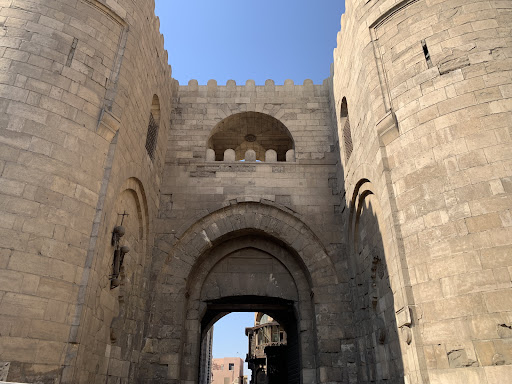 Read moreBab Zuwayla is composed of two massive circular towers that descend three meters below the present level of the street, connected by a bridge that arches at the bottom to hold the two wooden leaves of the gate, Between the towers, one passes beneath a shallow dome carried by four large arches. This passageway, today a section of a busy street, leads into the area of the original tenth-century city. The northem facade of Bab Zuwayla consists of a masonry wall topped by a main platform nearly nine meters above the present street level. The southern side of this main platform has three arched openings, above which is set another platform. The original access to the upper stories of Bab Zuwayta was from an L shaped staircase hidden behind the connecting city wall. Remains of this staircase still exist today. A new staircase, which visitors use today, was built in the...