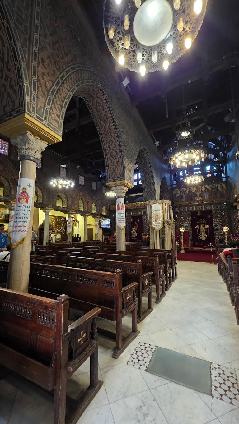 As the historic seat of the Coptic Orthodox Pope, the church symbolizes Egypt’s rich Christian heritage. Its design blends Byzantine, Roman, and early Islamic influences, featuring a basilica-style layout with a wooden roof resembling Noah’s Ark. Inside, ivory-inlaid screens, frescoes, and over 110 meticulously preserved icons—some dating to the 8th century—adorn its walls, including a revered 10th-century depiction of Christ enthroned.