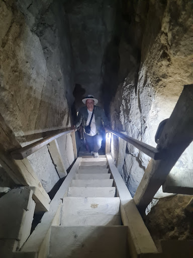 The shaft entrance is accessible by a wooden staircase. This shaft is a bit smaller than that of the Red Pyramid and crawling up and down is recommended. Please note that once inside the secondary chamber is accessible but some of the spaces are very tight so if claustrophobia is an issue best not to try...