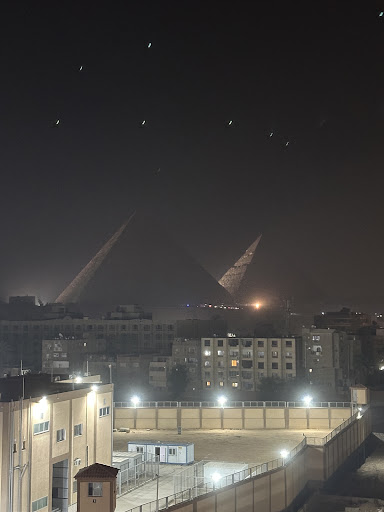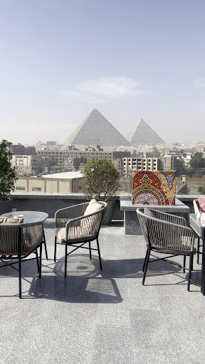 This hotel is definitely one of the best with an amazing view of the pyramid. This is the same as the New Pyramid Front Hotel, I am still confused why they have two different names for the same building but oh well!! Overall the experience was very positive. The hotel itself it is situated in a very poorly constructed area, there is not much for tourist around there. A lot of buildings are still under construction. The hotel is inside a very dodgy alley (who is actually guarded by people of the hotel), then the reception is on the 4th floor. Maybe because 1st floor is still not done. Inside it’s very modern and well presented. When we first got there we got greeted by very friendly and smiley staff. They were all really happy to see us. Be prepared to be giving out tips to staff that helps you as they expect it. We did not give it too all but only the ones that really helped us! We noticed in Egypt this is a very common thing. We first got given a very small windowless room and when we noticed that the sheets were stained, we reported it to reception and they straight away apologized profusely and offered us not only to change the sheet but they upgraded us to a much much bigger room!!! We were so pleased!! The room was clean, with window, beds were soft and comfortable. We had a really nice stay. During the night though you could hear people really talking loud in the corridors which I think it’s something that needs to be addressed as most people want to get rest during the night. Also you could hear people going up and down from the restaurant to the rooms as as I understand the pool is actually open all day and night. Our room was very close to the stairs to the restaurant and we could hear people and staff making noise, which is really frustrating as we kept waking up. But other that that everything was exceptional. Shout out to Mohamed who helped us from beginning to end, from booking a car to the airports to tours. If you are thinking of getting tours definitely get the through the hotel, they offer amazing tours and they’re also private! TripAdvisor advertised same tour for so much more money! Our tour guide was Mohamed and he was super knowledgeable about ancient Egypt and it’s history he also took us in great little ships to get amazing spices and perfumes! The restaurant upstairs has amazing views of the pyramids, the food is quite decent but… the pizzas have way too much cheese! Pool area is small and sometimes hard to...