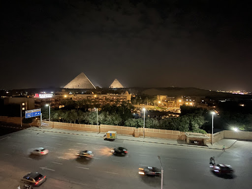 Read moreThe hotel is not bad. Old man from the reception has met us pretty cheerful, and agreed to show different rooms with the pyramids view and with the street view. I saw the ground, the second and the third floors my own eyes - construction finished, the hotel is renewed: clean carpets, painted walls, 100% solid 3 stars, normal Egyptian level. The furniture is clean, the same for bed appliances, sheets and towels - no blood, bedbugs or holes. Bathroom is not sterile, with some foot steps, and shampoo tubes looks like used a couple of times, but this is normal for such level of hotel. Not luxury, not premium, this is normal level. There is an open swimming pool on the roof. The water is cold! We really liked the view from the restaurant on the roof. And it has good menu with affordable prices. What we didn't like is breakfast. We asked on the reception at 9.40, where can we have breakfast? They showed a restaurant on the ground floor. We went there, and waiter said, the breakfast has already finished (at 9.45!) and he brought the poorest quality in my life scrambled eggs with a few pieces of obsolete Egyptian bread and some cheese. We also asked one water 0.5l and two coffees. Then they brought a check out recipe for 500 egp per two adults and one child. They explained that the free breakfast was on the roof near the swimming pool, but nobody informed us, on the contrary, the receptionist directed us to the “Tasty House”. Such a terrible breakfast costs there 120 egp + 60 egp coffee per person. Because of that I put three stars, but initially planned to put four. Be careful at the hotel, ask about the prices in advance. Do not take a room with windows to the internal yard - noisy weddings will...