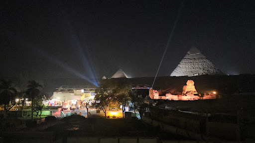 We booked the double or twin room with Pyramids view for one night during Ramadan. The view from the 4th floor bedroom's balcony is amazing and also from the 5th floor restaurant. You can watch and hear most of the Pyramids Light and Sound show in the evening - the restaurant gets busy for this. The room was clean and suitably equipped with kettle and television (some English speaking channels) The shower in the ensuite was very good. Shampoo & shower soap provided. Upon arrival our suitcases were brought up the stairs to the 4th floor reception. We had welcome drinks and the staff asked us which excursions we would like to take. A taxi was organised for a return trip to the Grand Egyptian Museum. Also the following morning a horse and cart ride with a guide around the Pyramids. The breakfast includes cold meats, egg and the freshly cooked falafel was lovely. Also Juice and coffee There is a notable Police presence in the local area and we were told this is to help keep tourists safe.