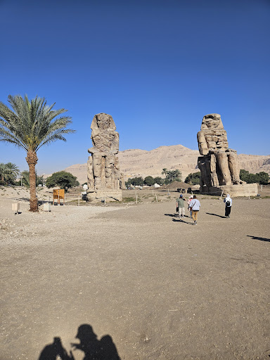 Statues of Memnon, or Giants of Memnon, are two monumental statues, established around the year 1350 BC which is all that remains of a temple in memory of the pharaoh (Amenhotep III), located in Thebes, Western Egypt. They are for King Amenhotep the Third, one of the kings of the Eighteenth Dynasty, and it is the most powerful ruling family in ancient Egyptian history.