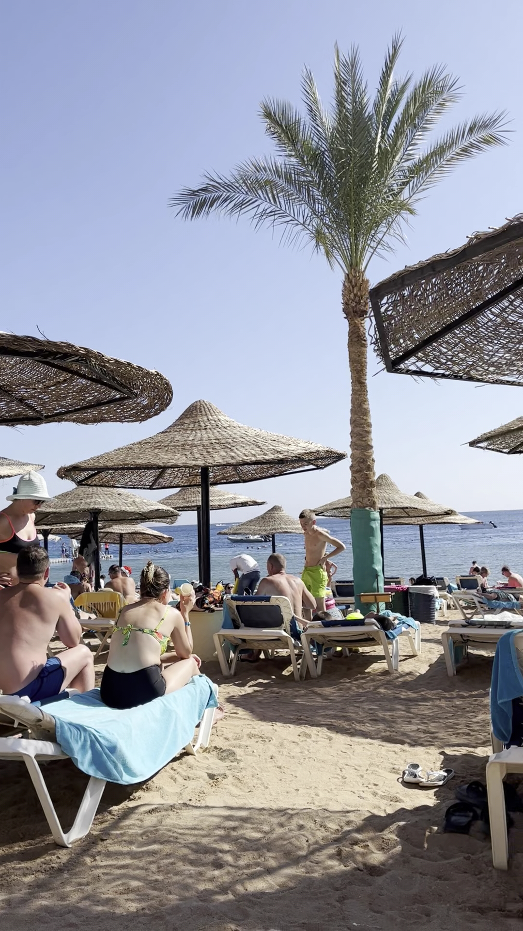 Must-Visit Beach in Sharm El Sheikh! This beach is an absolute must-visit if you're in Sharm El Sheikh, especially if you love snorkeling. For just $4 per person, you can sit at a café and enjoy the spot all day—such a great deal!