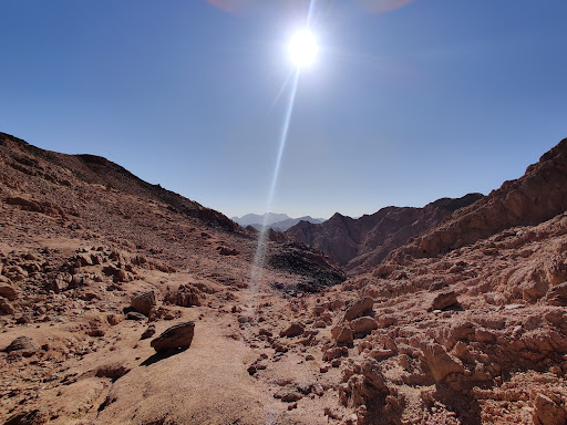 Read moreDahab'ta yapabileceğiniz en güzel şeylerden biri buraya gidip ilginç dağlardan vadilerden geçmek. tarlanın yanından yürüyerek çıkılan giriş beniş büyük bir yol ama çok keyifli değil. ilerideki evlerin arasından çıkılan girişi doğrudan vadilerdeki patikalara çıkıyor. biraz tehlikeli olsa da harika bir deneyim. Bayrak olan kayanın manzarası ayrıca güzel ama gittiğimide bayaa rüzgarlıydı. dikkat edin ve yanınıza mutlaka bol su alın, sağlam bir ayakkabı ve rahat...