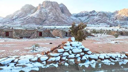 2- Mount Saint 🌊 Catherine Mount Saint Catherine or Saint Catherine Mountain is located next to Mount Moses and is considered one of the highest mountains in Egypt and reaches a height of 2629 meters above sea level, and That snows in the winter🌨 The mountain is named Da in honour of Saint Catherine, who is one of the most important saints in the West and who has played a major role in the spread of Christianity and died for Christianity🤗 At the top of the mountain is her chapel, and near the chapel are two dormitories, where those who climb the mountain can sleep and rest🤗.