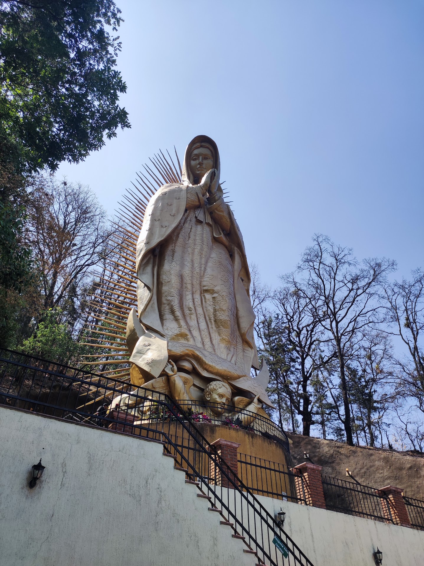 Read moreMuy bonito lugar, me toco visitarlo un dia de baja concurrencia, encuentras mucho que comprar, tanto en comida como bebidaa y souvenirs, precios moderados, hay muy poca agua para la cantidad de gente que llega, esto lo hace algo poco higienico, fuera de eao muy agradable. En cuanto al arbol me gustaría le dieran mas espacio es emblema natural muy importante y no se le tiene el debido cuidado. La virgen esta tan grande que se ve desde lejos, muy hermosa de verdad. Si estás de visita y quieres comprar los cocodrilos, pan tradicional del lugar pasa a un lugar llamado "Tepo de Ocuilan" que está en la carretera principal, ya que ahí están mejor y...