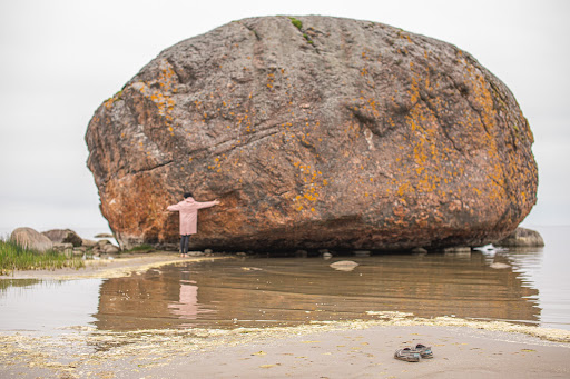 Access to the rock depends on the season, but it's a pretty big'un. The road leading to the beach is tight and bumpy on occasions, but moderately well kept due to the border guard doing things nearby. Once you are out of the car and see the boulder, you might be intimidated by tall grass and/or pools of water in between you and the boulder, but fret not! Unless the boulder is in deep sea due to high tides, it is not impossible to reach it by making...