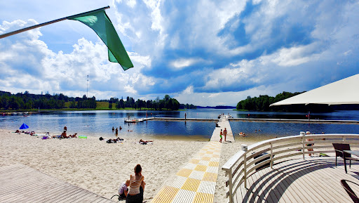 amazing & modern beach by the lake! great with kids. separate swimming area for kids (there is a slide ) & for adults (floating bridge with bank to sit on, diving area & separate line for training. lifeguard, cafe, boat, kayak, sup board renting service) , cloth changing cabins, toilet, shower, volleyball playground, kids playground. clear water in the lake & clean sand. picnic tables, teracce with tent. nice & beautiful view, parkarea, fresh air. I definitely...