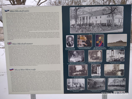 Read moreВеличественное здание было, жаль что заброшено. "Поместье Мяо (нем. Mexhof ) впервые упоминается в 16 веке. Двухэтажное каменное главное здание в стиле барокко было построено при поместье фон Ферзен в конце 17 века. Здание, разрушенное в Северную войну, было восстановлено на основе старых стен в 18 веке. В 1820-х и 1830-х годах здание было основательно перестроено в представительном стиле классицизма. Здание, превратившееся в руины в 1960-70-е годы, было восстановлено в конце 1980-х годов. Однако тогда были достроены только новые потолки и крыша, после чего работы...
