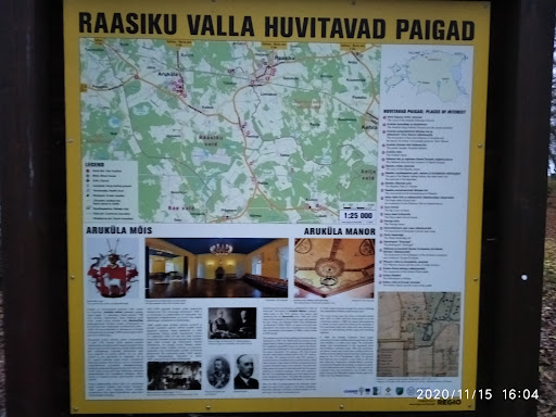 Красивое здание исторического поместья. Хорошо содержится. "Усадьба Арукюла (нем. Arroküll ) была основана в 17 веке как боковая усадьба мызы Раасику . С 1726 года это была отдельная казенная усадьба. В 1766 году усадьбу приобрел Карл Густав фон Баранофф, семья которого оставалась во владении до его переезда в 1919 году. Последним владельцем до передачи был Петер фон Баранофф. Главное здание усадьбы было построено в 1820-х годах как одноэтажное длинное каменное здание в стиле классицизма . Здание с соломенной крышей характеризовалось невысокими треугольными фронтонами на выступающих боковых рациях. На рубеже 19 и 20 веков к центральной части здания был пристроен второй деревянный этаж, что существенно изменило внешний вид здания. В 1921 году в здание переехала местная школа. Школа использовала усадьбу до 1978 года, когда было построено новое школьное здание. С 1992 года в здании, принадлежащем муниципалитету Раасику, работает Свободная вальдорфская школа Арукюла. В зале усадьбы организуются различные культурные мероприятия. Сохранились несколько хозяйственных построек усадьбы, в том числе амбар и конюшни (частично...