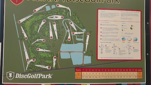 Decent disc golf course, but a bit annoying for beginner if you like to lose discs in the trenches. Also be prepared not to throw into the pond at second course. Other than that it is interesting: changing landscapes, twists and huge trenches. Did I mention there are lots of trenches where you can throw...