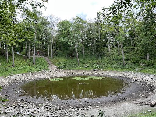 Read more4,000 years ago, a meteorite originally weighing 400 to 10,000 tons is said to have entered the Earth's atmosphere from the northeast at a speed of 15 to 45 km/s. Due to the constant friction, it lost mass. The largest fragment weighed 20 to 80 tons and formed the Kaali meteorite crater. Additional, smaller fragments created eight secondary craters. The center of the crater is a pool of greenish water about 50 meters in diameter. It is surrounded by a 16 meter high earth wall with a diameter of around 110 meters. There are eight secondary craters in the area, which are significantly smaller with diameters between 15 and 40 meters. There are several myths among the population of Saaremaa about the formation of the craters. Out of horror at a sibling marriage, the meteorite is said to have devoured the wedding church. Another legend tells of a landowner who is said to have been swallowed up by the earth after an unrestrained orgy, complete with the estate and...