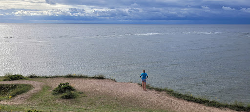 Read moreDas erste was man sieht ist ein weitläufiger, kostenfreier Parkplatz. Am Rand stehen überdachte Sitzgelegenheiten und ein paar Grills zu freien Nutzung. Zusätzlich ein zeitweise geöffneter Kiosk. Drei mobile Toiletten sind auch noch da, die man im Notfall nutzen kann. Verlässt man den Parkplatz in Richtung der Abbruchkante hat man sofort eine großartige Aussicht, atemberaubend - wegen der Höhe und des Windes. Für Menschen aus tendenziell überregulierte Länder ist ziemlich verblüffend, dass es keinerlei Warnschilder - und erst recht keine Hindernisse oder Zäune - gibt, die vor der Abbruchkante warnen, vor der Höhe und vor der generellen Gefahr für Mensch und Tier. Da es aber anscheinend nicht zu größeren Verlusten an Tier- oder Menschenleben kommt, scheint dieser Verzicht hinnehmbar und ausreichend zu sein. Weitere Wege vom Aussichtspunkt sind nicht ausgeschildert. Vorschläge zum Spazieren oder Wandern werden nicht gemacht. Um es kurz zu machen: das ist schade, denn es wird deutlich besser, wenn man geht, und erst recht, wenn man nach unten an den Strand kommt. Dazu folgt man dem Pfad entlang der Abbruchkante Richtung Südwesten, genießt ab und zu die Aussicht von der zunehmend niedrigeren Klippe, bis man nach ca 900 m damit rechnen kann, Abstiege an den Strand zu finden. Die Abstiegs-/Aufstiegsstellen sind nicht ausgeschildert oder gar ausgewiesen, man muss sie suchen. Sie sind, deutlich offensichtlich in sehr freier privater Initiative, mit Seilen versehen, denen man skeptisch und ausgesprochen eigenverantwortlich trauen kann - aber nicht muss. Das Ganze ist absolut nicht barrierefrei und wirklich nur für Leute mit sicherem Tritt, gutem Körpergefühl und immer mit Vorsicht zu genießen. Das Gehen im Geröll am Strand ist schwierig und etwas mühselig, aber...