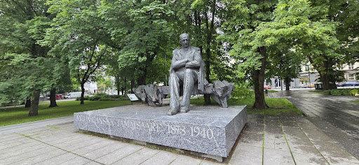 🪑 Wrażenia z miejsca: ✅ Pomnik znajduje się w ładnym, zielonym parku tuż przy placu jego imienia (Tammsaare Park), w centrum miasta, ale jednocześnie w spokojnym otoczeniu. ✅ Sama rzeźba przedstawia Tammsaarego siedzącego na ławce – jest realistyczna, prosta, a jednocześnie elegancka. Można przysiąść obok, co nadaje miejscu bardziej osobisty charakter. ✅ Otoczenie jest zadbane, z miejscami do odpoczynku, fontanną w pobliżu i przestrzenią, która sprzyja chwilowej refleksji.