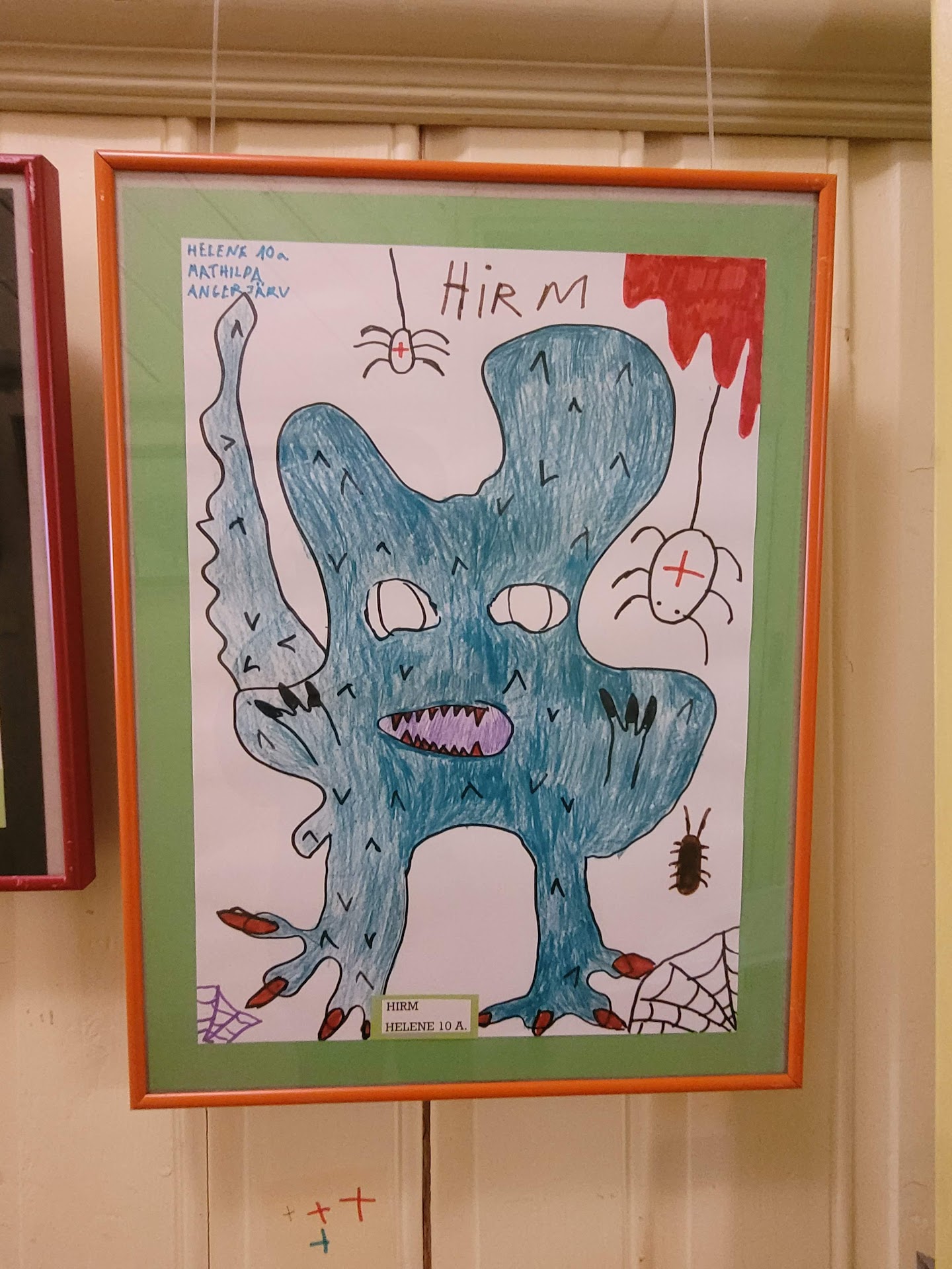 Further down the hall, some amazing (and some pretty creepy) drawings by former, small guests.