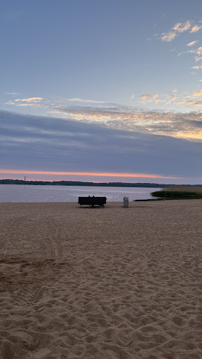 Has benches, shops nearby, beautiful place to go watch sunsets. You can swim if you'd like. It even has a net...