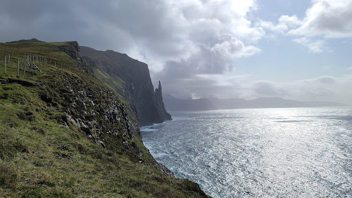 Contrary to what my previous speakers have said, I don't believe this is an easy hike (it was like a spell!) On the contrary: it was my most difficult hike in the Faroe Islands, and also my only one. I almost slipped in my wheelchair and fell off the cliffs - hadn't a brave black sheep heroically thrown itself in front of me and saved me from certain death.