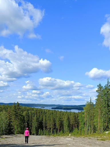 Mäen päällä vähän sivummalla on näkötorni jonka alemmalle tasolle pääsee esteettömästi, ja näkymä on siitäkin upea. Lämmin suositus. Tornille on tie Kovalantien kautta mutten tiedä onko sillä talvikunnossapitoa.