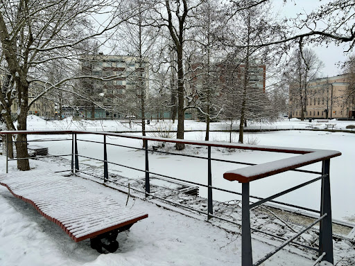 This park is located in the center of Forssa. I visited in late March, and it was undergoing winter maintenance. The whole park was covered in dust from gravel that had been spread on the snow to prevent slipping, and from studded tires, so I had no motivation to take photos. However, a sudden snowfall during the night allowed the park to show its quiet and...