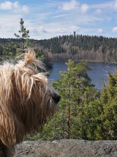 Hieno kierros järven ympäri Sibeliuksen metsässä ja maisemissa. Sanotaan että S sävelsi Finlandian höyryjunan tulon (Hämeenlinnaan) kunniaksi, ei niinkään Aulangon metsien vuoksi, ehkä sen innoittamana kuitenkin. Kapusimme reitiltä myös ylös näkötornin juurelle, reilusti tuli portaita, yli 300. Kiersimme reitin vastapäivään, ja aivan lopussa oli surkein osuus, reilu kilometri hiekkatietä pitkin. Muuten oli kokemisen arvoinen reitti. Lähtöpaikalla (parkiksen vieressä) oleva kahvila teki temput kun tultiin, yksityistilaisuus - joten jäi kahvittelu väliin...