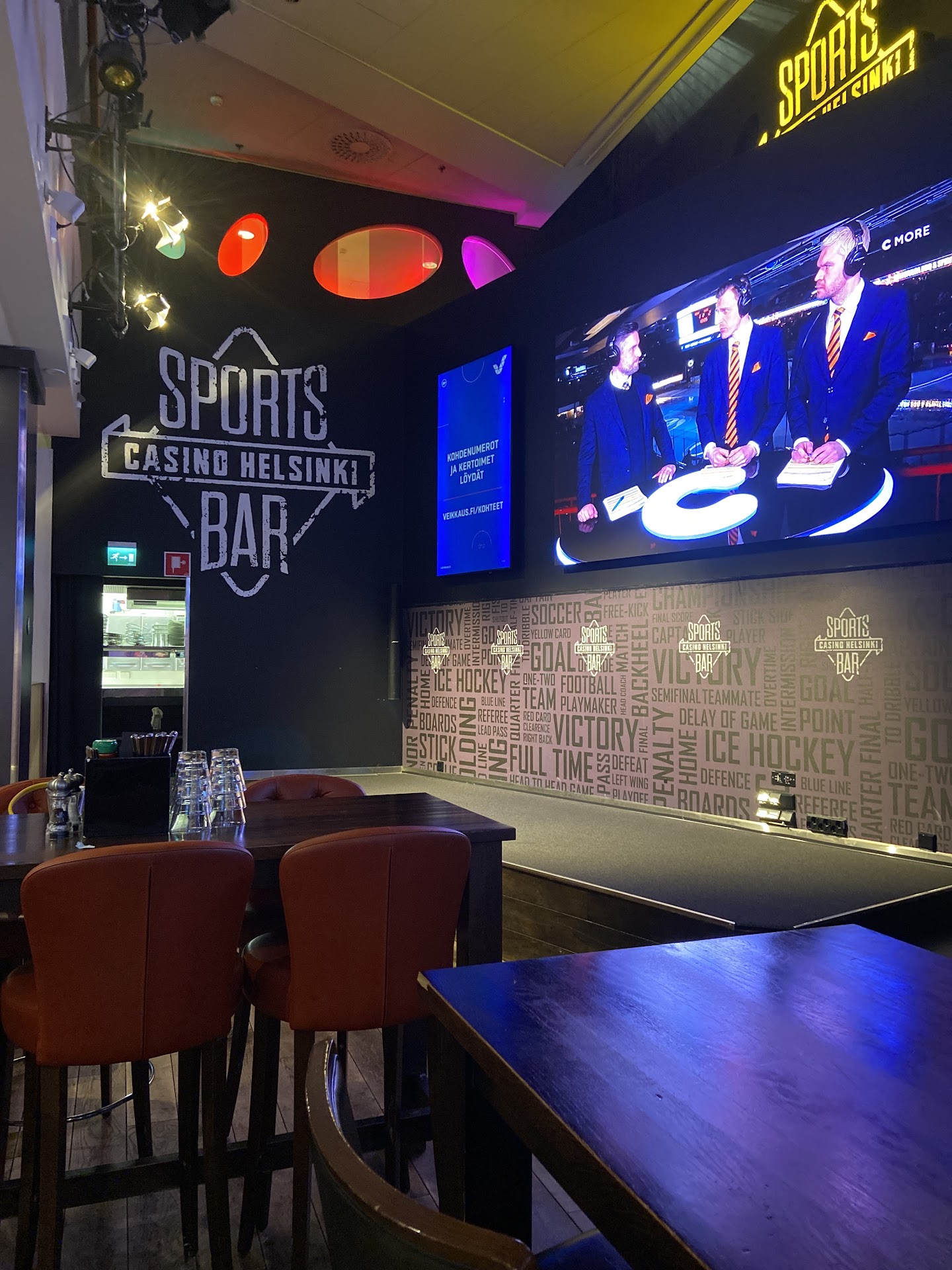 Real Casino on multiple floors. Passport or ID Card needed (no driver license), and Casino card. No kids allowed. There is elevator easily move between floors. Machines eats only Euro notes (5€ - 500€), * NOT COINS *. All payout comes on slip that can cash out machine or checkout. Bars is located basement but place has restaurants between floors. Place has OTTOPlus ATM, normal withdraw everyone but also Deposit function mainstream Finnish bank users, look OTTO website more details. Jackpot games (with led jackpot signs) most these are basement level. Those who like play with coins, Kaisaniemi Metro station (Helsingin Yliopisto), Located next building has Pelaamo mini casino, or almost Casino Feel Vegas is on Kaivopihan (CityCenter, know also as Makkaratalo). Those also are no Kids allowed, some benefits using Veikkaus game ID card Veikkauskortti. On Casino Veikkauskortti aren't used with games, only Casino card. Dress code: No shorts, no sport clothing. Basic business or casual ok.