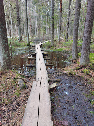 The Haltialan Korpipolku trail offers a captivating journey through lush Finnish forests, presenting nature at its finest. Moss-covered grounds, towering trees, and the occasional glimpse of wildlife create an enchanting atmosphere for hikers.