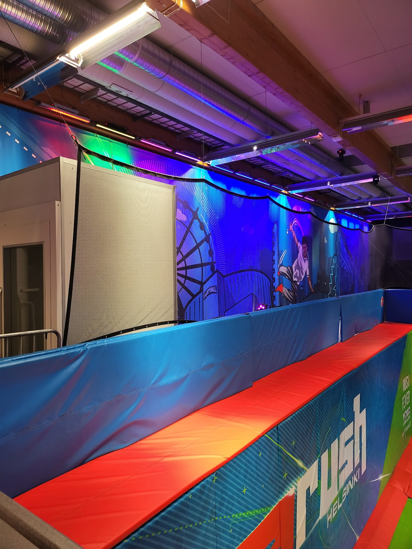 Read moreMaksullinen parkkipaikka on miinusta, jota voisi odottaa Helsingin keskustassa mutta ei täällä. Hinta on mielestäni edullinen, mutta esimerkiksi useamman lapsen perheelle jo vähän tuntuvampi. Mutta vastaavaa viihdettä voi olla hankalaa löytää edullisemmin, joten hinta-laatusuhde hyvä. Turvaohjeiden lukeminen ja tietojen täyttäminen tehdään padilla ennen lipun ostamista, mikä voi olla kokemattomalle hieman hankala kokemus. Henkilökunta varmasti auttaa, jos on hankaluuksia. Isoista pukukaapeista muutama ei toiminut ja loput olivat varattuja. Talvivaatteiden änkeminen pieneen lokeroon lumisten talvikenkien kanssa tuntui hölmöltä. Toki kengät olisi voinut jättää kaapin ulkopuolelle, mutta riski kenkien katoamisesta talvellla ei houkutellut. Paikka oli mielestäni siisti ja puhdas. Juomapulloille löytyy omat säilytyspaikat, niin ei tarvitse kantaa niitä koko ajan mukana. Isompia trampoliineja voisi olla enemmän, vaikkakin pienistäkin trampoliineista riittää iloa. Myös viistottaiset trampoliinit, joita vasten pystyy hyppäämään sivuttaissuunnassa, ovat hauskoja. Hyppimiseen riitti tilaa hyvin. Vaahtomuovilla täytettyyn volttimonttuun on 70 kg painoraja, mikä oli pettymys, koska volttimonttu olisi kiva olla myös aikuisille. Yllätyin, miten hyvä pelisilmä kaikilla pomppijoilla oli, sillä törmäilyjä tai etuiluja ei tapahtunut. Vapaapudotus-hyppyhommassa valvoja voisi antaa vähän paremmin ohjeita hyppyyn, tai siinä voisi olla selkeästi näkyvä plakaatti tai animoitu ohjevideo. Ehdottomasti vapaapudotushypyssä voisi olla myös vaikka kaksi eri korkeutta, josta hypätä. Yhteenvetona sanoisin, että tunnissa saa helposti hikeä pintaan hauskalla tavalla, joka ei...