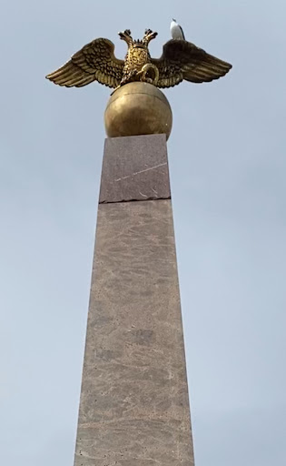 What you find is a red granite obelisk that historically was topped with a gilded bronze sphere and double-headed eagle which is presently removed. It is an interesting monument worth spending a couple minutes to view while sightseeing at the...