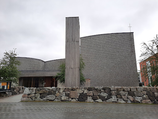 Esternamente sembra un edificio squadrato, dentro è una meravigliosa chiesa in legno con una serie di ampi punti luce che le danno ariosità e leggerezza: si tratta di ampi finestroni che mostrano su due lati bellissimi scorci di natura. È suddivisa in più settori per servire alle diverse fasi del culto luterano, le sezioni si chiudono con porte scorrevoli, sempre in legno. L’altare ha l’aspetto di una finestra con due ante spalancate, dal lato sinistro entra una lama di luce da un’ampia feritoia. Un bellissimo organo in legno aggiunge ulteriore leggerezza al contesto. Il soffitto reinterpreta il tetto a doppia orditura con straordinaria creatività. L’illuminazione artificiale ha un design moderno e perfettamente combinato alla semplicità dell’interno. Dedicata alla parabola della vigna: ogni sua parte rilevante fa riferimento a quell’episodio, come le campane nel campanile esterno: ognuna di esse ha inciso un versetto-chiave tratto da...