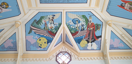 Read more6.2025: We came to see the Pop-Art paintings from the 1970s on the church's ceiling and weren't disappointed. This little wooden church is really worth a visit. Take small change with you if you want to take a postcard as a souvenir. Check their opening...