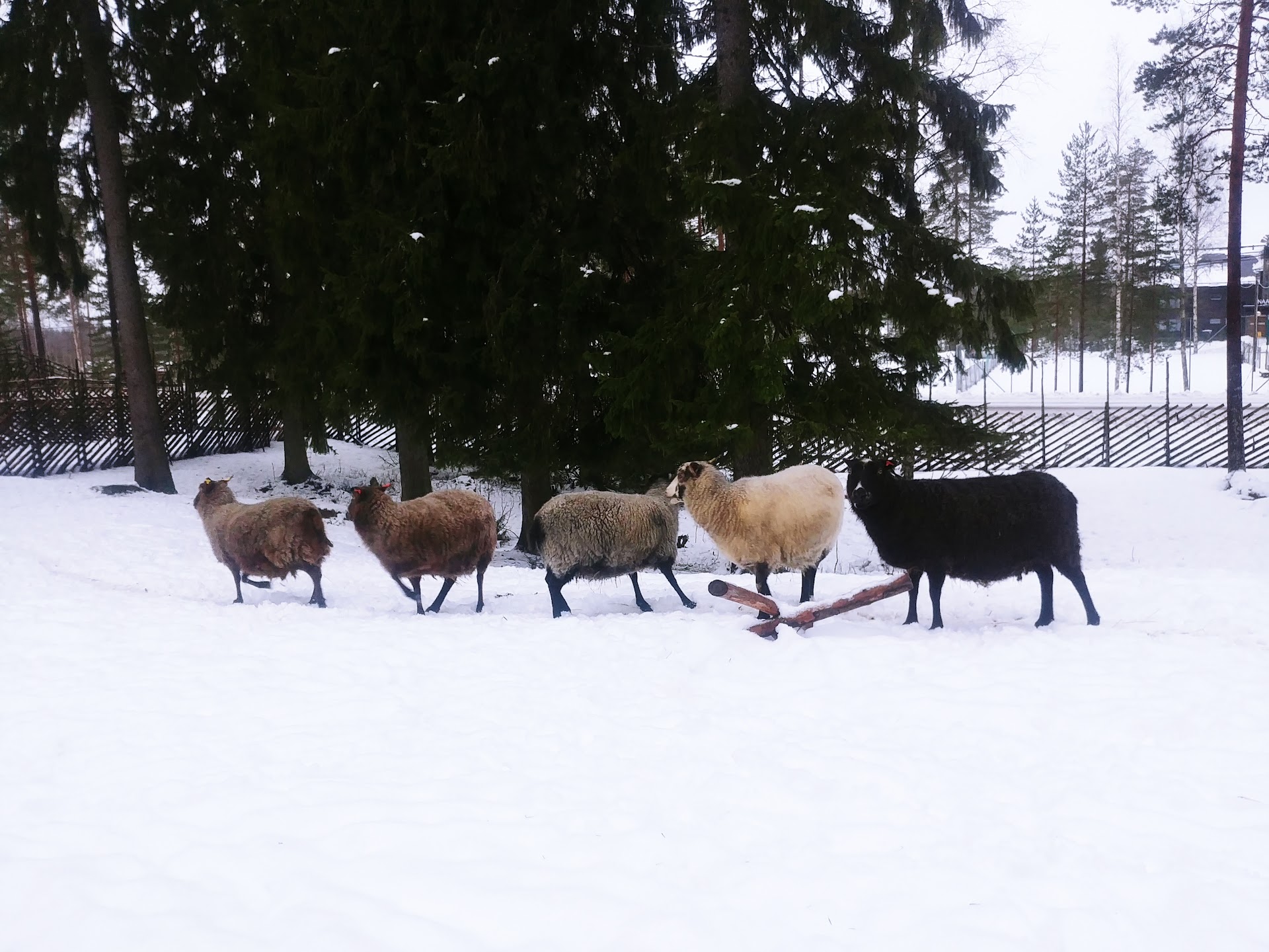 Reittiä ei ollut hiekoitettu, mutta tarkasti tassutellen pystyssä pysyi. Yleensä on ollut tapana käydä puistossa kesällä, tai ei ainakaan marraskuun lopussa. Ehkä olisi pitänyt muulloinkin tulla tähän aikaan. Tarhassa sai tassutella ihan rauhassa ja eläimet...jos ne kesällä nojuvat ja könöttävät piiloissaan, oli nyt talven kynnyksellä elämää ja ruuhkaa kuin tapparan maalilla.