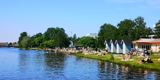 Read moreMainio uimaranta perusuimarannan palveluilla keskellä kaupunkia. Vilvoittava joki vesi, joka syvenee nopeasti ja sopii siten parhaiten uimataitoisille lapsille. Plussana läheisyydessä kahvila vessoineen ja saunaseuran saunalautta. Miinuksena se, että vaarallisesta virrasta varoittavat pollarit ovat...