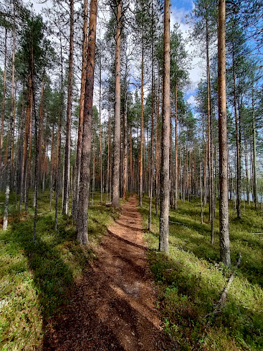 We did a mix of Mäntypolku and part of Suomunkierto - around 12km. The road to there was quite bumpy and very small at the end, but there are now lot's of parking spots. There is an info point where they sell maps, beverages, chocolate bars and badges as well as give more info about the place. You can rent there also Sauna or boats.