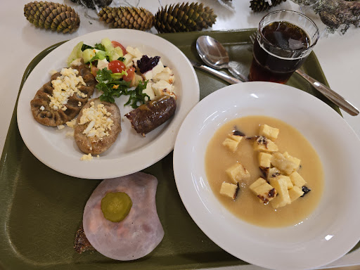 Lähiruokapäivä 7.9.2024, hinta 30€. Oli köyhä valikoima pääosin huonosti valmistettuja ruokia. Lihakeitto oli mautonta. Leipä ei hääviä ja lupauksista poiketen tarjolla vain yhtä laatua. Leivän päälle ei juustoa. Juustojahan luvattiin useita, mutta oli vain leipäjuustoa. Sen päälle ei ollut lakkahilloa, hillojahan luvattiin useita mutta oli vain yhtä. Ryynimakkara ei kummoista. Kalja oli liian väkevää eikä lainkaan makeaa. Vain rasvaista täysmaitojuomaa. Luvattiin jugurttia ja omenapiirakkaa. Olikin rahkaa ja kaurakeksiä. Rahka oli liian kermaista ja marjoja todella nuukasti. Keksit oli liian jauhoisia ja makeita. Ikään kuin ruokia tehdään vähän sinne päin katsomatta reseptiä. Onko kylässä niin huono ravintolavalikoima että kukaan ei osaa tai kehtaa vaatia parempaa? Tällä hintaa tämä oli suoranainen ryöstö. Mitkään ohraryynit ei muutenkaan maksa juuri mitään. Karjalanpiirakat ja piimävelli oli ok. Itse museo oli...